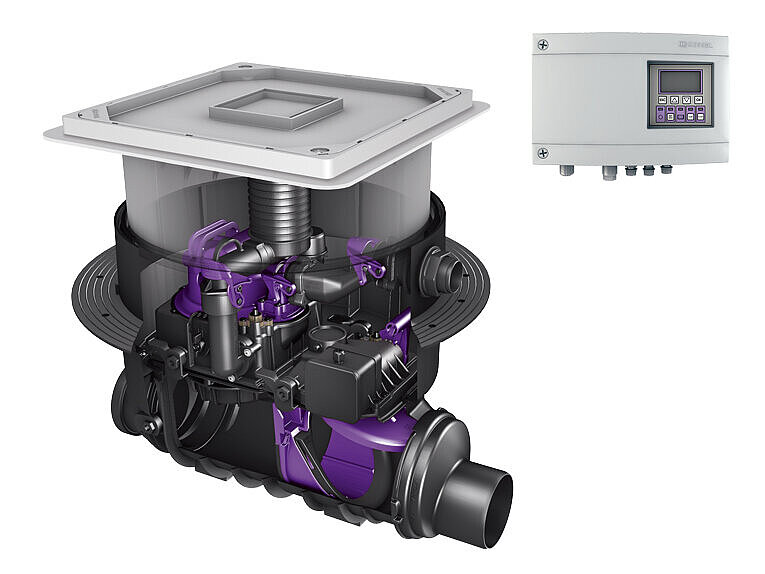 Instalația de pompare este un mijloc consacrat pentru a proteja punctele de scurgere de sub nivelul de refulare. Aceasta pompează apa uzată printr-o buclă antirefulare, care previne refularea apei în cladire. Pentru mulți, situația este astfel rezolvată când vine vorba despre selectarea unui sistem antirefulare – deși adesea ar exista premisele corecte, pentru a economisi o mare parte a costurilor de energie electrică și întreținere cu o soluție hibrid ecologică. Înainte de a alege o instalație de pompare convențională, ar trebui deci să verificați dacă situația dumneavoastră de montaj necesită efectiv regimul permanent de pompare.