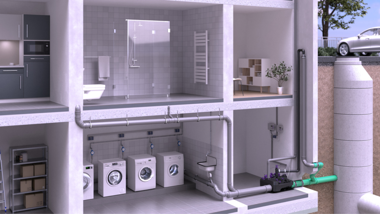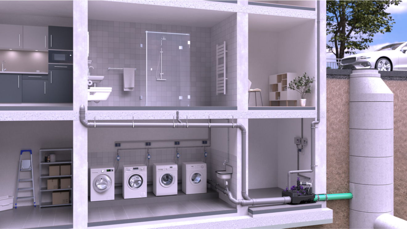 Ecolift L face uz de forța gravitațională: prin intermediul pantei naturale, aceasta drenează apa uzată fără consum de curent electric. Abia în caz de refulare, aceasta folosește pompele pentru eliminarea apei uzate. Acest fapt economisește energie și, simultan, protejează mediul înconjurător. Perfectă pentru reabilitarea energetică!