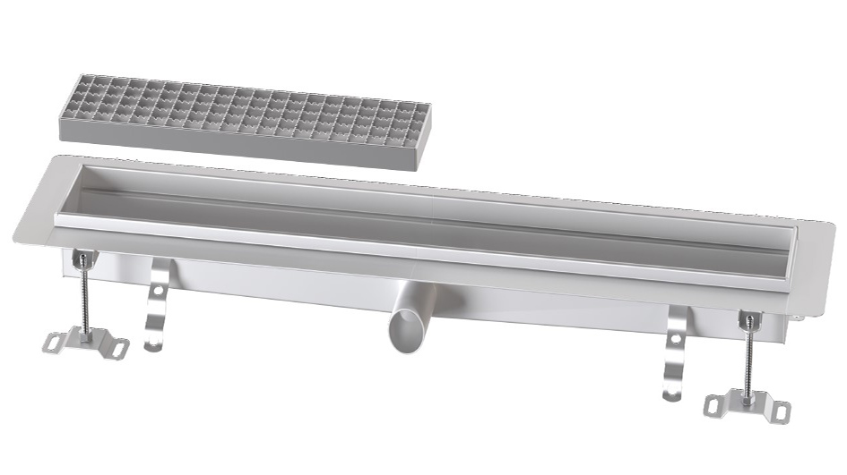 Din motive constructive sau optice adesea nu este posibil să se monteze o rigolă din oțel inoxidabil în locul în care trebuie poziționată, vertical prin plafon. În acest caz, rigola din oțel inoxidabil trebuie prevăzută cu un racord orizontal. Astfel, racordul poate fi mutat la un punct la care este posibil un racord la o conductă de apă uzată existentă sau este posibilă o străpungere verticală a plafonului.