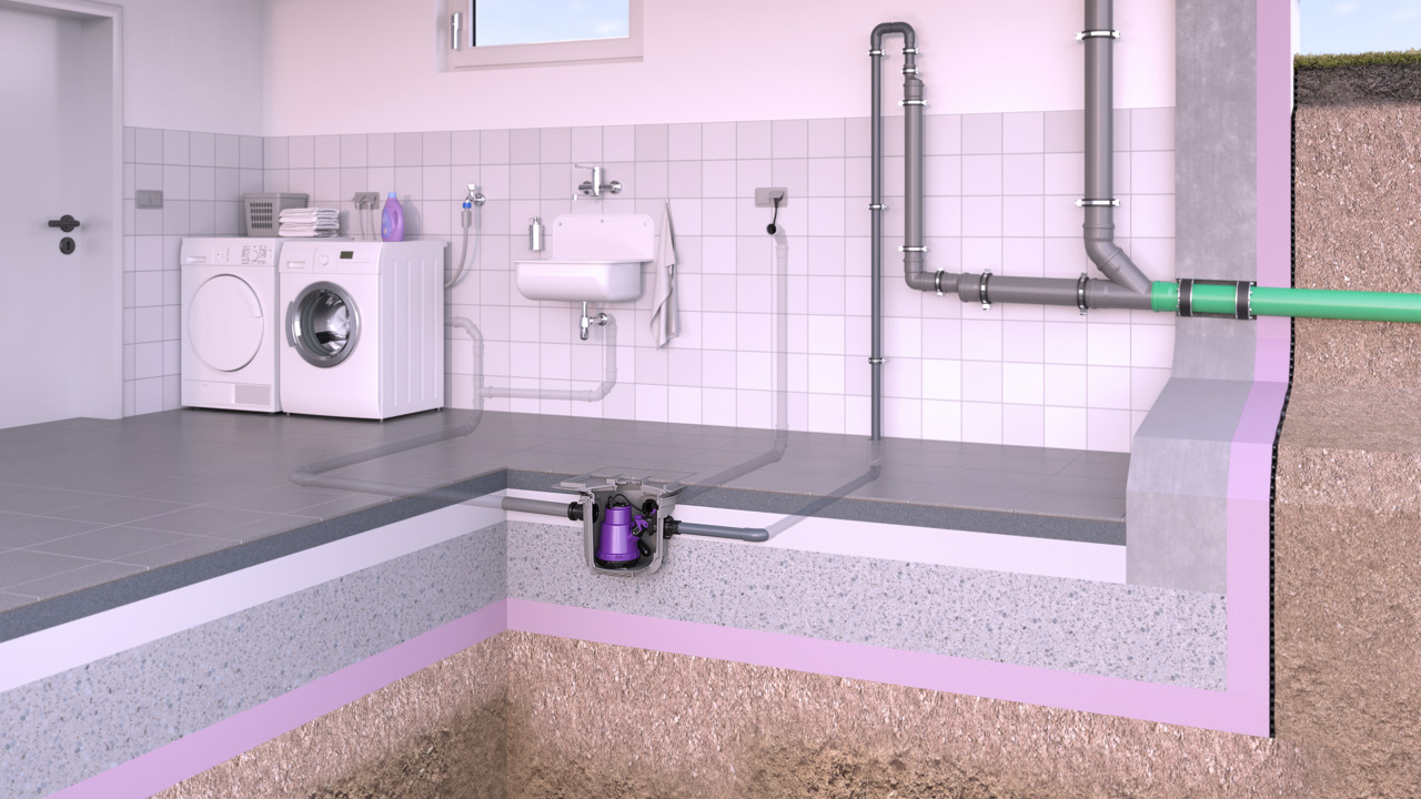 Dacă Minilift L este montat în placa de fundație, se obține un sistem de ridicare aproape invizibil. Scurgerea integrată în capac colectează apa murdară. Chiar și în cazul unei spargeri de conductă sau al unei inundații, pompa evacuează continuu această apă murdară, menținând astfel subsolurile uscate.