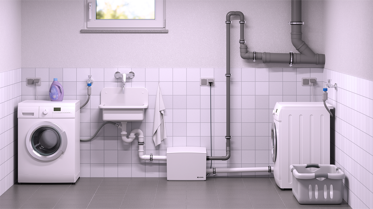 Dacă Minilift L se montează în pardoseală, rezultă o stație de ridicare aproape invizibilă. Scurgerea integrată în capac preia apa murdară. Chiar și în cazul avariei unei conducte sau inundații, pompa elimină această apă murdară în mod continuu și păstrează astfel uscate spațiile pivniței.